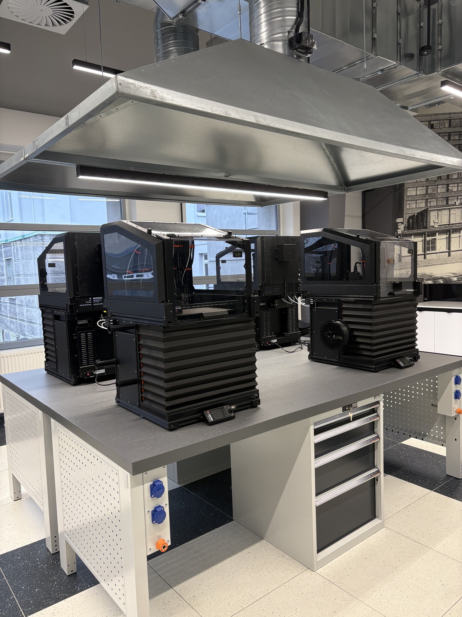 - zestaw drukarek 3D Original Prusa XL, w tym trzy urządzenia dwugłowicowe oraz jedno w wersji pięciogłowicowej przeznaczone do zaawansowanych projektów wielomateriałowych,