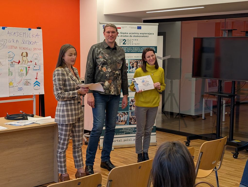 Szkolenie skierowane było do nauczycieli akademickich, którzy chcą wzbogacić swoje zajęcia o elementy gamifikacji, zwiększając zaangażowanie studentów i wspierając ich motywację do nauki. Uczestnicy poznali podstawy gamifikacji, przykłady dobrych praktyk oraz narzędzia umożliwiające wdrażanie mechanizmów gry w środowisku akademickim. Szkolenie miało charakter praktyczny, uczestnicy testowali wybrane metody podczas samodzielnej pracy.
