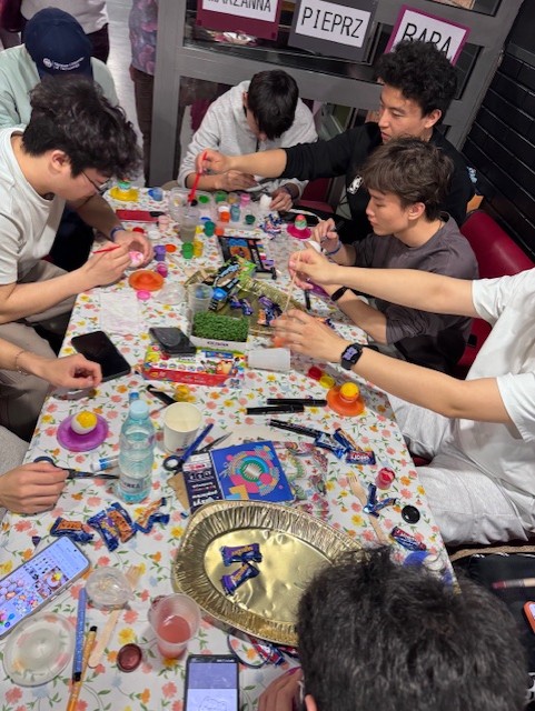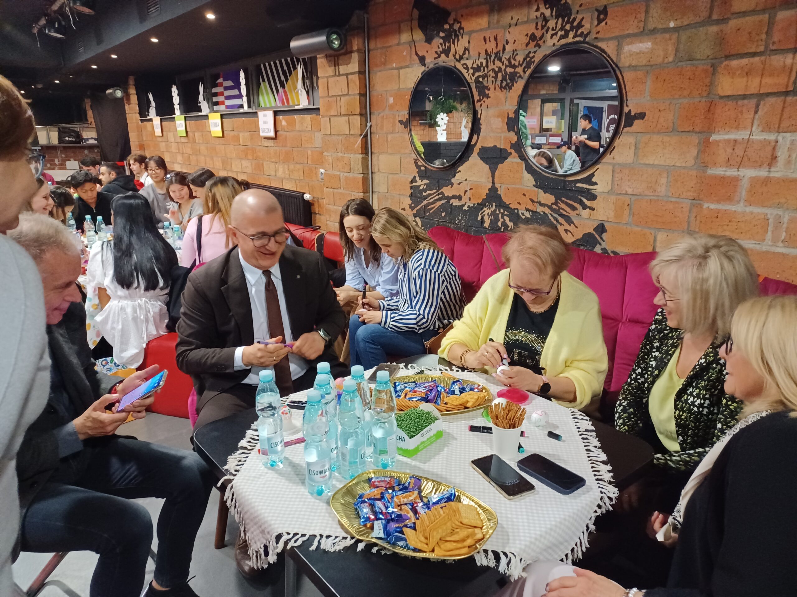 Tradycyjnie podczas międzynarodowego spotkania wielkanocnego wszyscy wspólnie dekorowali świąteczne stoły, przygotowywali koszyki i ozdabiali pisanki. Nie zabrakło konkursów i quizów na temat polskich zwyczajów świątecznych i tradycji oraz jak zwykle atrakcyjnych nagród dla zwycięzców. Lektorki języków obcych, które na co dzień uczą studentów z zagranicy języka polskiego zadbały, by przy okazji świątecznego spotkania utrwalili kilka polskich zwrotów czy słówek. Uczestnicy mogli także delektować się świątecznymi potrawami takimi jak żurek czy sernik. Jak zwykle dopisały humory, a atmosfera była pełna życzliwości i śmiechu. To już VI Międzynarodowe Spotkanie Wielkanocne, które zostało zorganizowane przez Studium Języków Obcych we współpracy z Centrum Obsługi Studiów i Działem Współpracy z Zagranicą - Sekcją Wymiany Międzynarodowej.