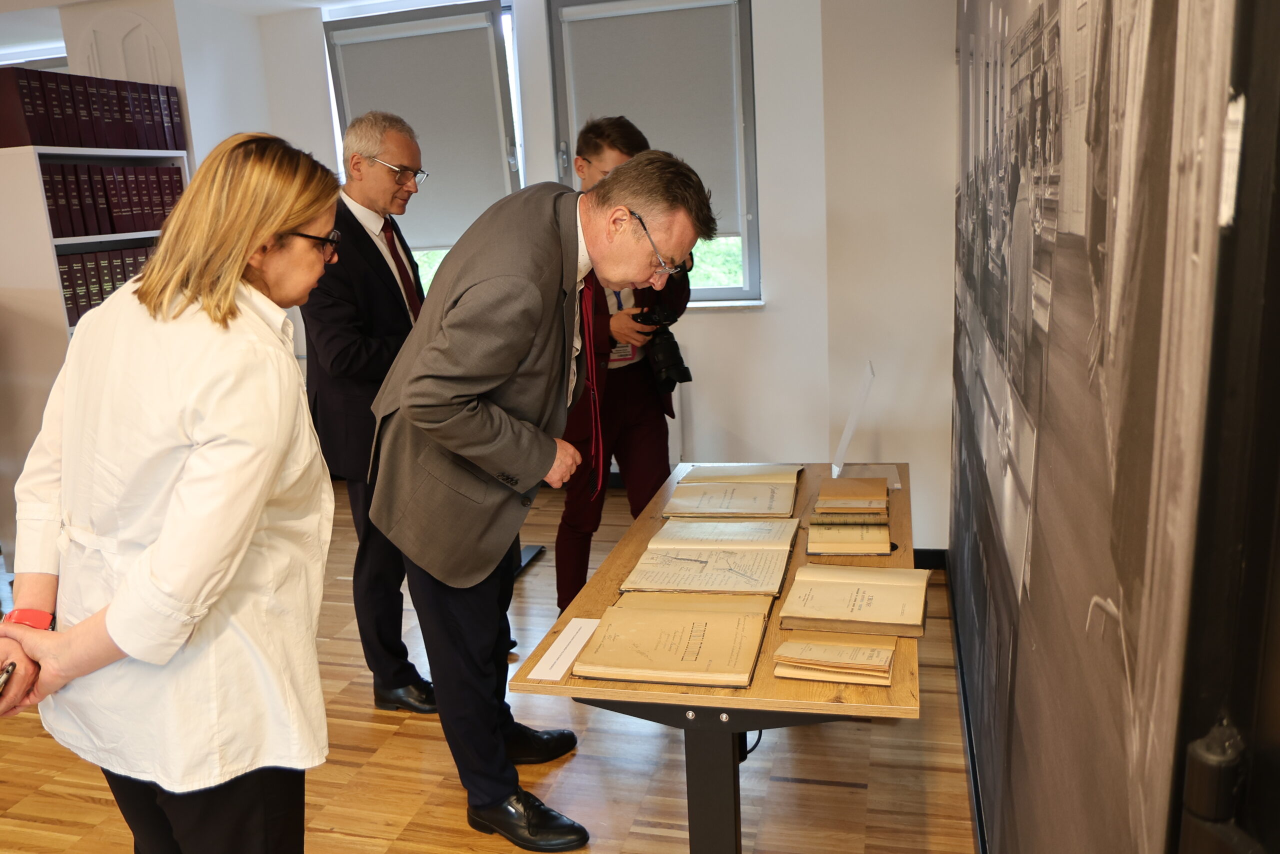 Minister Dariusz Wieczorek miał okazję zwiedzić nowe wnętrze Biblioteki, które jest przed ostatnim etapem wykończenia po gruntownej przebudowie, zobaczyć cenne zbiory zaprezentowane w wystawie „Nasze początki” przygotowanej w ramach Tygodnia Książki, a także porozmawiać z uczestnikami wydarzenia o wyzwaniach w sektorze szkolnictwa wyższego oraz perspektywach rozwoju.