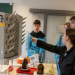 Uczniowie, podzieleni na grupy, byli oprowadzani po laboratoriach i kolejnych warsztatach. Podkreślali, że dobrze spędzili czas poznając bliżej Wydział, naukowców oraz sprzęt, na którym pracują.