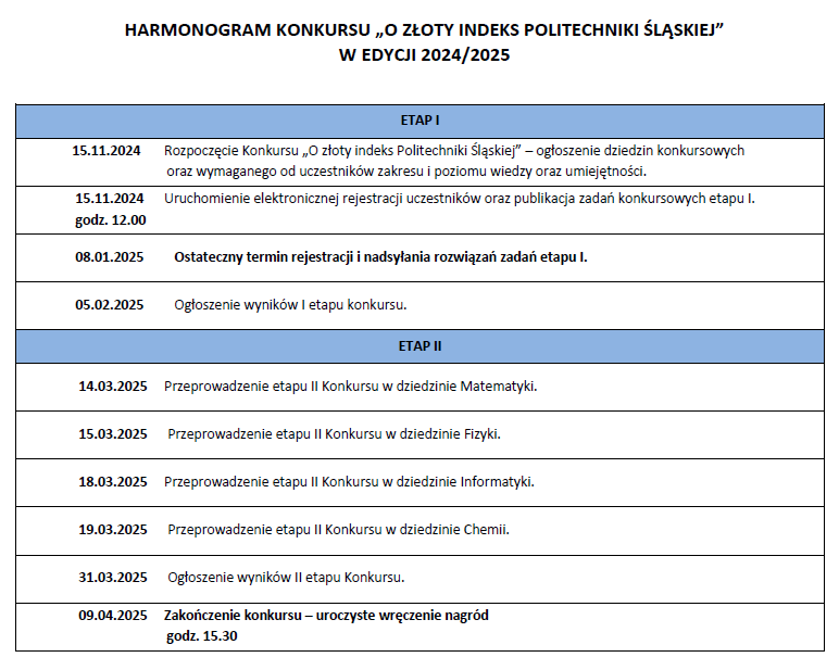 Konkursu „O złoty indeks Politechniki Śląskiej”