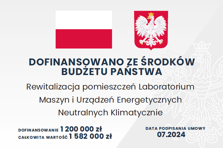 Wydział uzyskał dotację z Ministerstwa Nauki i Szkolnictwa Wyższego na rewitalizację pomieszczeń Laboratorium Maszyn i Urządzeń Energetycznych Neutralnych Klimatycznie.