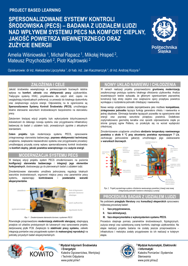 Michał Rapacz, Amelia Wiśniowka, Wojciech Liśkiewicz – „Badania z udziałem ludzi nad Spersonalizowanymi Systemami Kontroli Środowiska (PECS)”, XIII International Conference – Youth for a Sustainable Future, Environmental Protection and Energy (EPEA 2025), 5 grudnia 2025, Gliwice