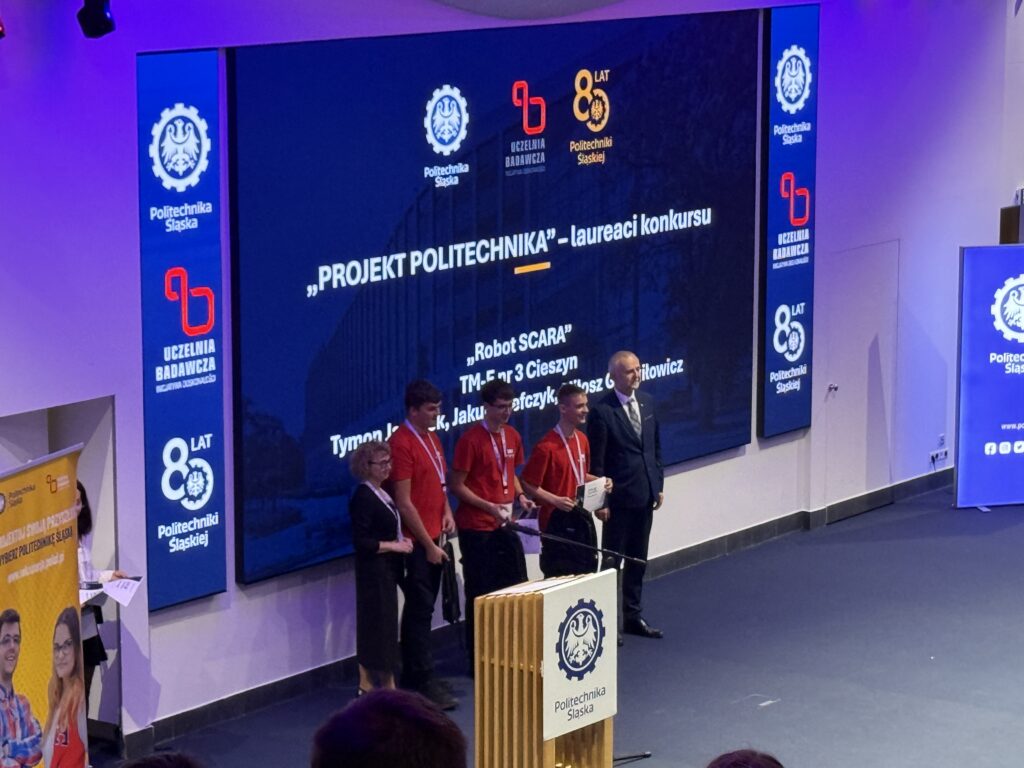 Nasz Wydział jak zawsze aktywnie uczestniczy w tym projekcie, czego efektem jest nagroda dla uczniów z Zespołu Szkół Technicznych im. płk Gwidona Langera w Cieszynie, którzy zrealizowali projekt pt. „Robot SCARA” Opiekunami projektu są dr inż. Grzegorz Gembalczyk oraz mgr inż. Kamil Kurpanik z Katedry Mechaniki Teoretycznej i Stosowanej.