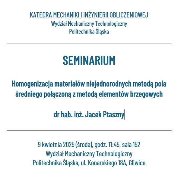 Katedra Mechaniki i Inżynierii Obliczeniowej