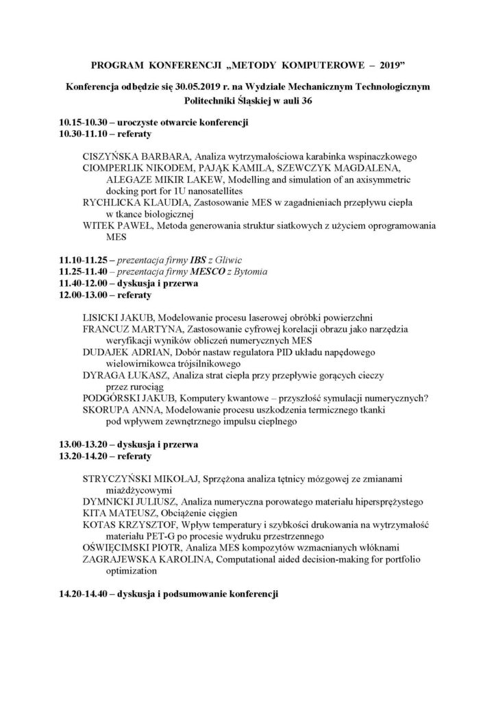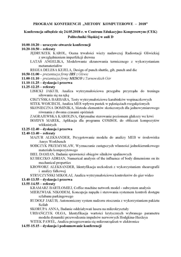 studenckiej konferencji naukowej “Metody Komputerowe – 2014
